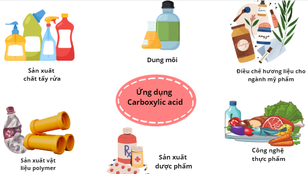 Một số ứng dụng của carboxylic acid được thể hiện trong sơ đồ sau: