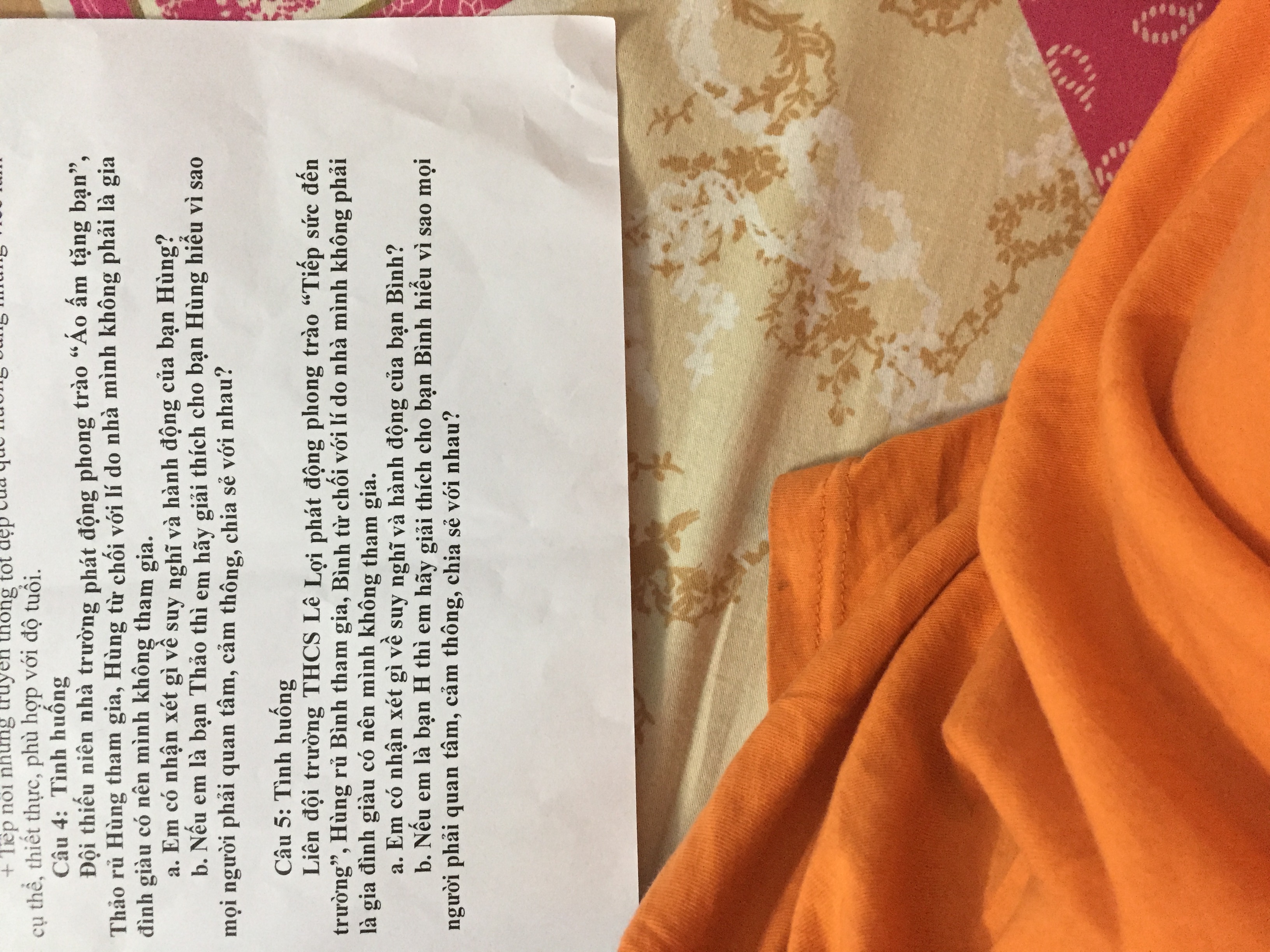 Câu 4: Đội Thiếu niên nhà trường phát động phong trào áo ấm tặng bạn.