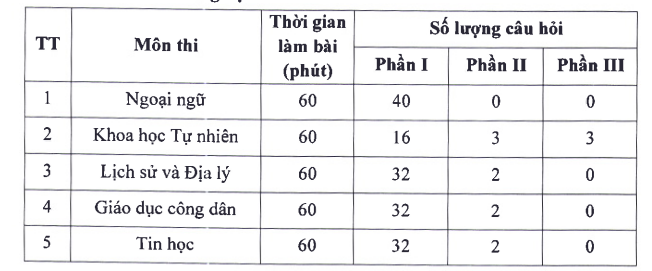 Theo Phụ lục ban hành kèm theo Thông báo 2988/TB-SGDĐT năm 2024 Tải về, cấu trúc đề thi vào lớp 10 Hà Nội năm 2025 theo chương trình mới như sau: