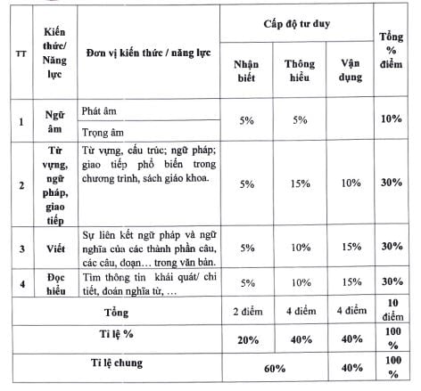 - Đề thi gồm 02 phần (Đọc hiểu và Viết).