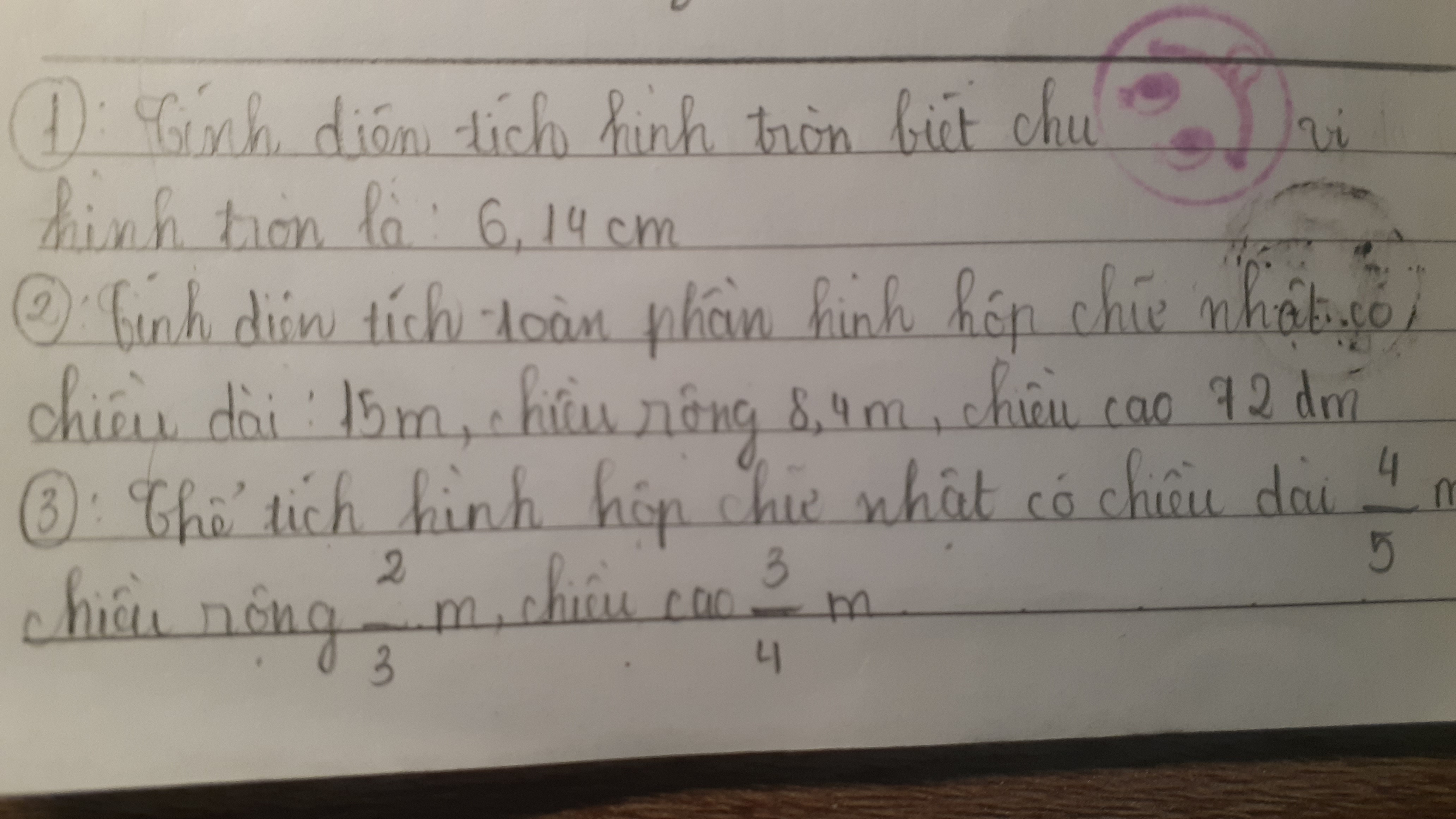 Tính diện tích hình tròn biết chu vi hình tròn là 6,14cm