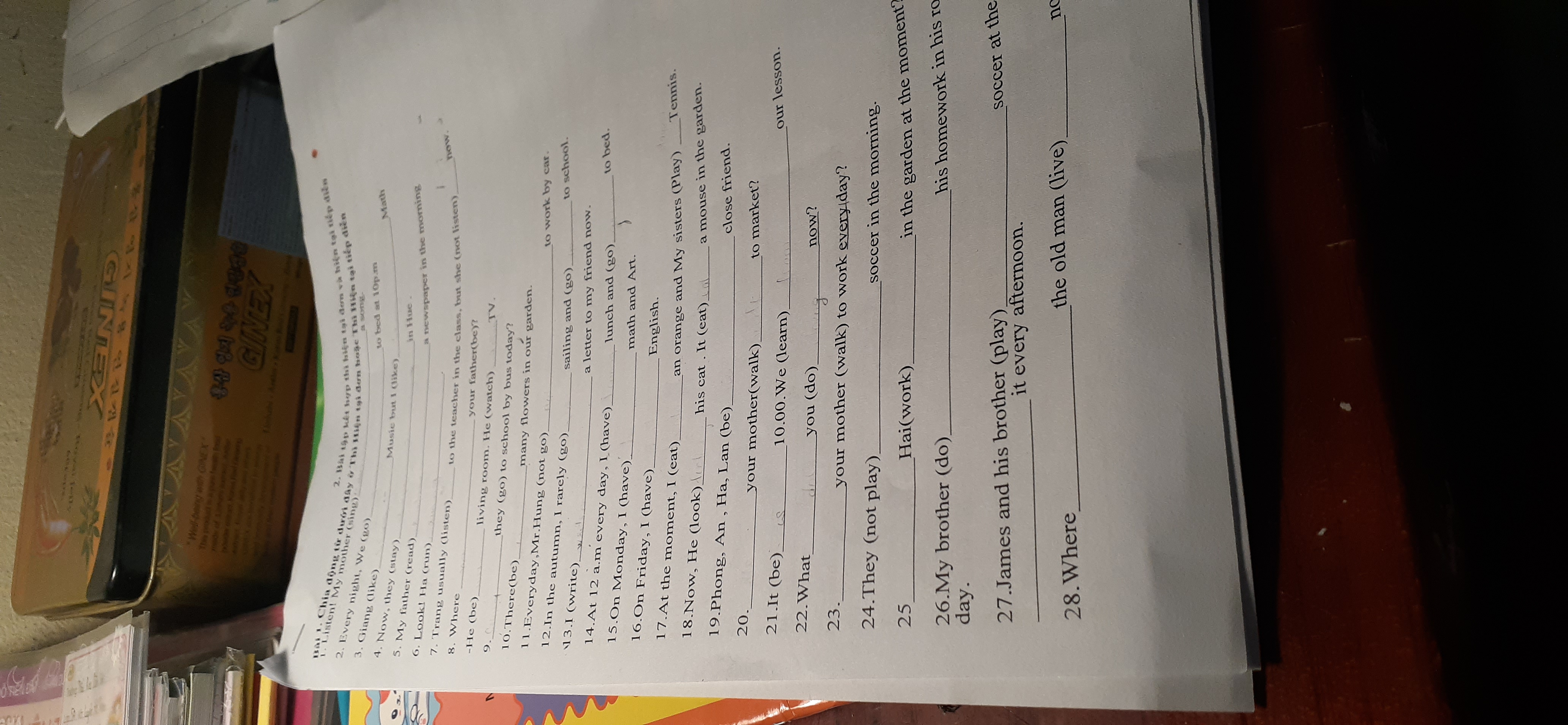 Chia động từ ở thì Hiện tại tiếp diễn: Listen! My mother (sing) ........ a song