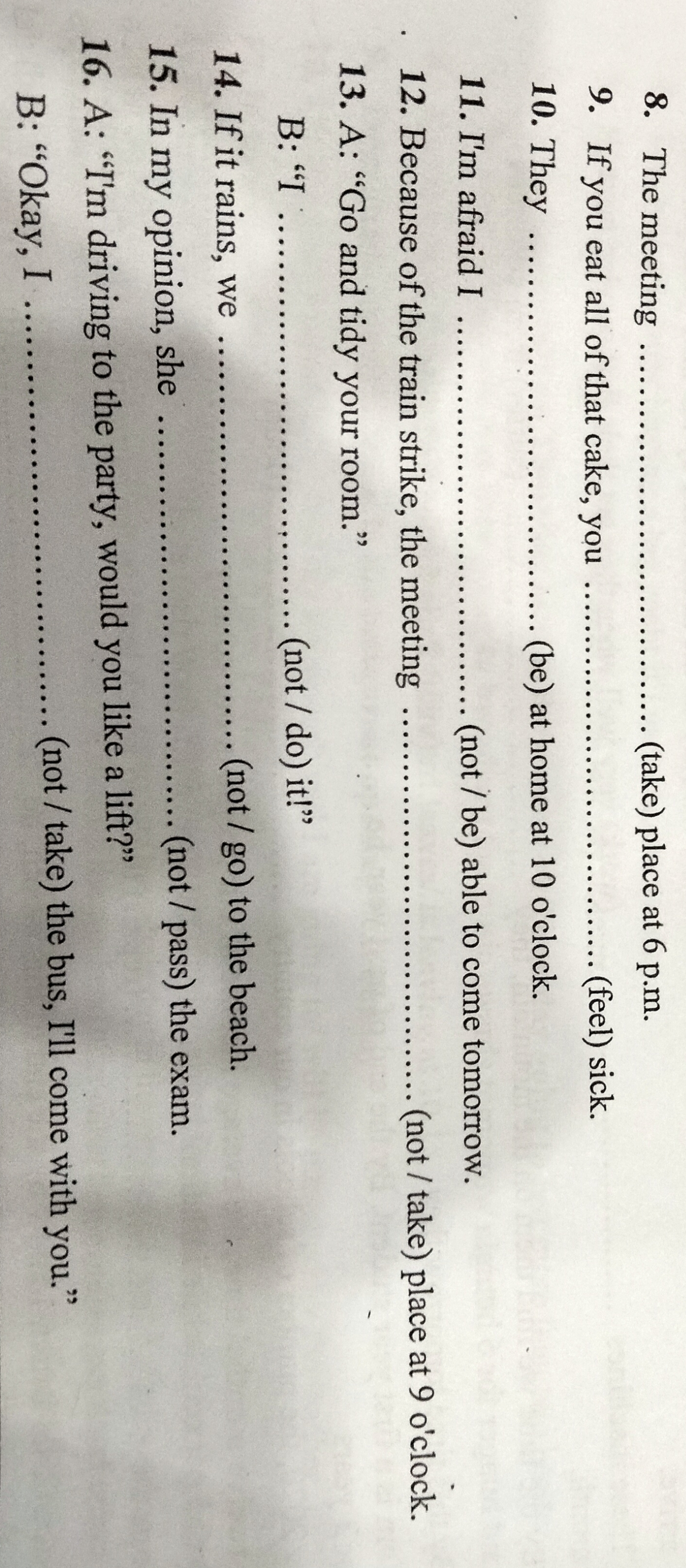 if you eat all of that cake, you ......... (feel) sick