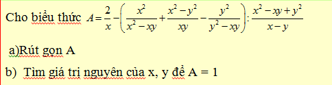 cho biểu thức Aa) rút gọn Ab)tìm giá trị nguyên của x,y để A bằng 1