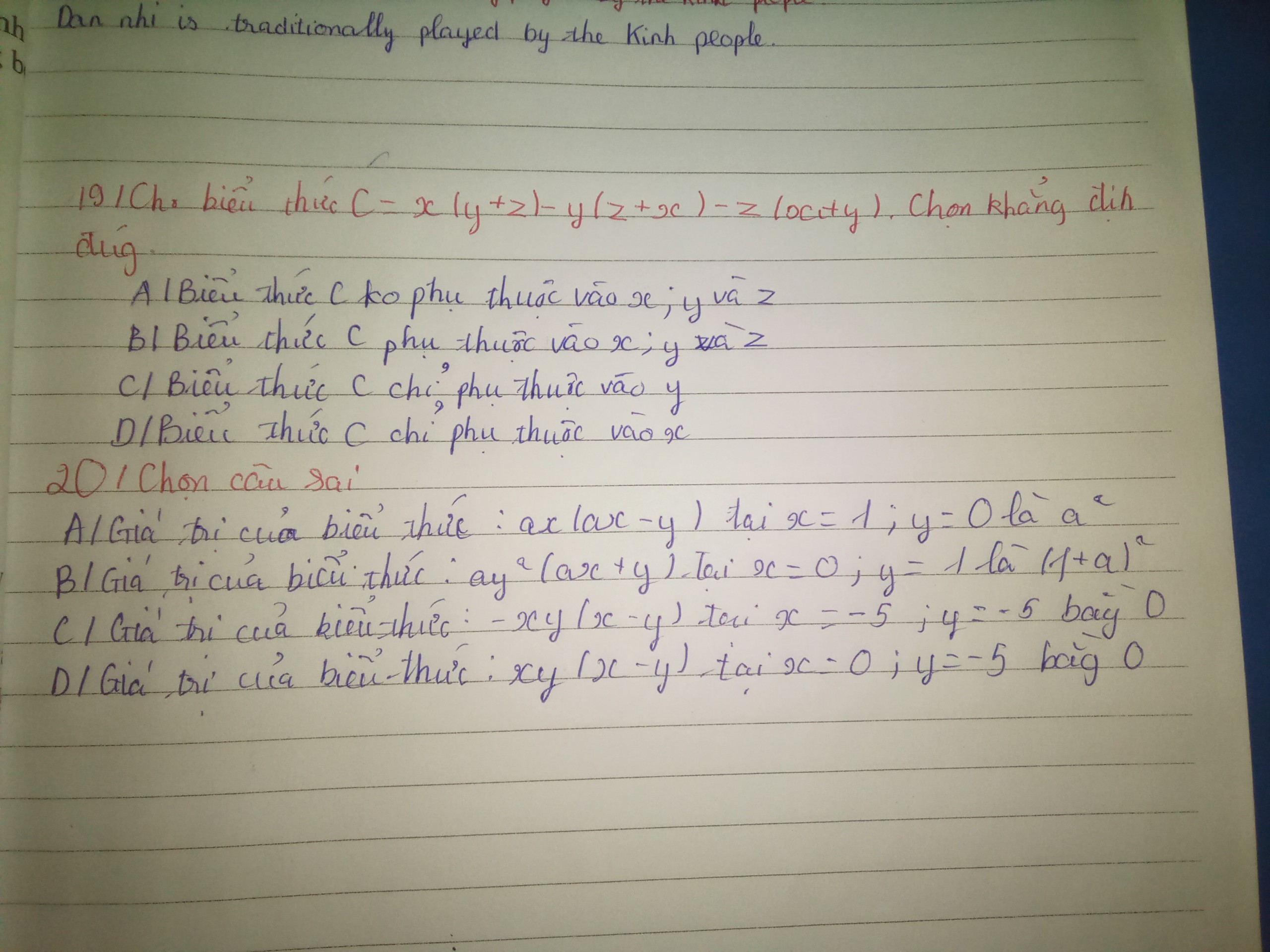 Cho biểu thức C = x.(y + z) - y.(z + x) - z.(x + y)