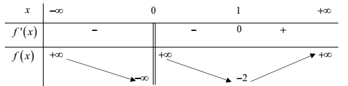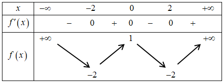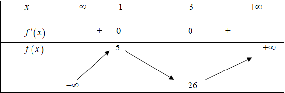 \(\mathbb{R}\) và có bảng biến thiên như sau: