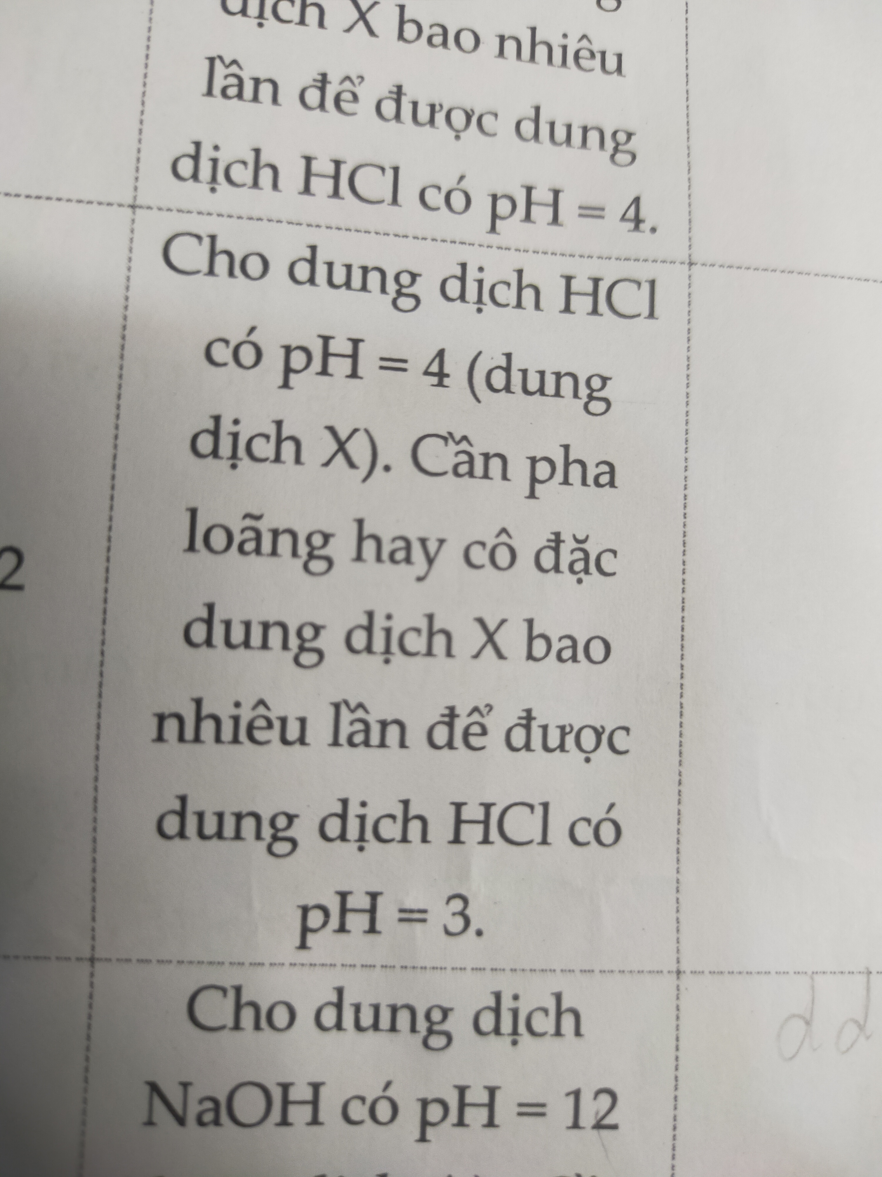 Cho dung dịch hcl