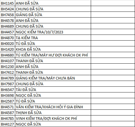 ng cột thứ 2 không ạ . tại e muốn nếu có chữ " đã sửa" thì cột t3 hiện chữ "xong" còn " kiểm tra " thì có chữ " đợi" ạ