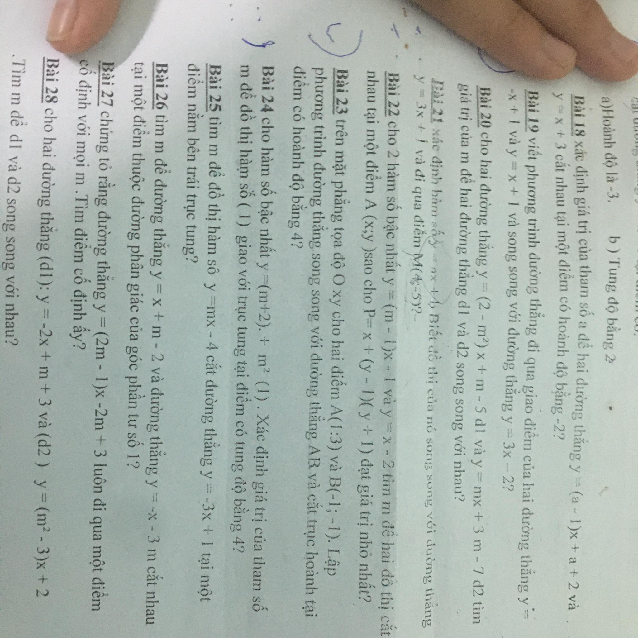 Cho hàm số bậc nhất y = (m - 1)x - 1 và y = x - 2