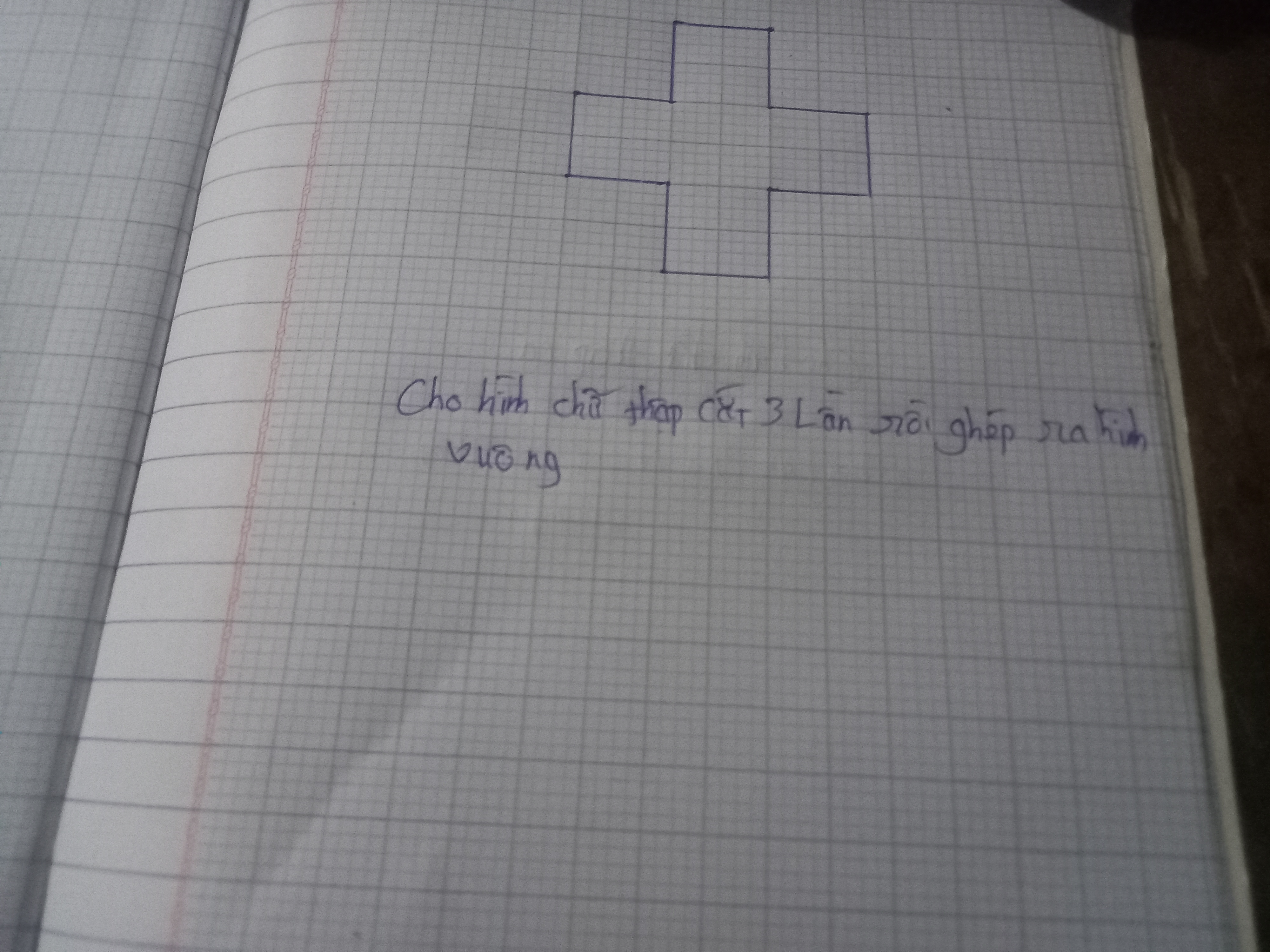 Cho hình chữ thập rồi cắt 3 cạnh rồi ghép lại ra hình vuông mong anh c