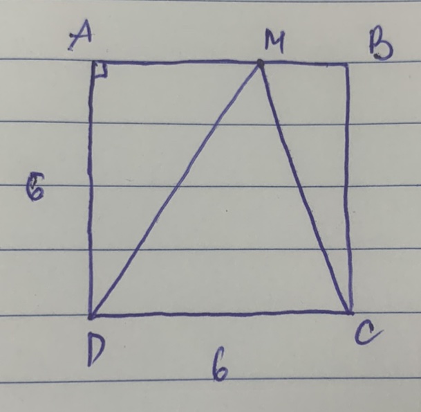 . Trên cạnh AB lấy điểm M sao cho độ dài AM bằng 2/3 độ dài cạnh hình vuông. Tính diện tích hình tam giác AMD, MCB, DMC