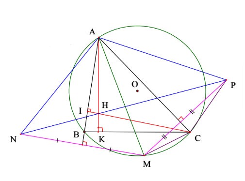 Từ (3), (4), (5) => ∠N1 = ∠N2 mà B, N, H thẳng hàng => M, N, P thẳng hàng. (6)