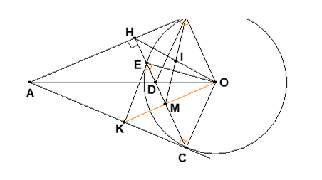 + Có AE và ME là hai tiếp tuyến cắt nhau tại E nên EO đi qua trung điểm AM (1)