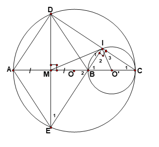 => ∠I1 = ∠E1 ; ∆O’IC cân tại O’ ( vì O’C và O’I cùng là bán kính )