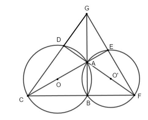 Bài 1: Cho hai đường tròn (O) và (O’) cắt nhau tại A và B. Các đường thẳng AO và AO’ cắt (O) tại C và D và cắt (O’) tại E và F. Chứng minh rằng AB, CD, EF đồng quy.