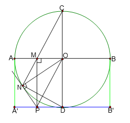 Bài 3 Cho đường tròn (O) bán kính R có hai đường kính AB và CD vuông góc với nhau. Trên đoạn thẳng AB lấy điểm M (M khác O). CM cắt (O) tại N. Đường thẳng vuông góc với AB tại M cắt tiếp tuyến tại N của đường tròn ở P.