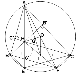Bài 6 Cho tam giác ABC nội tiếp (O). Gọi H là trực tâm của tam giác ABC; E là điểm đối xứng của H qua BC; F là điểm đối xứng của H qua trung điểm I của BC.
