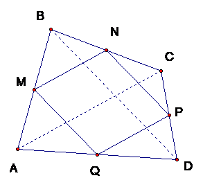 \(ABCD\). Gọi M, N, P và Q lần lượt là trung điểm của các cạnh AB, BC, CD và DA. Chứng minh: