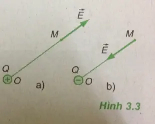 Hãy chứng minh vectơ cường độ điện trường tại điểm M của một điện tích điểm Q có phương và chiều như trên hình 3.3.