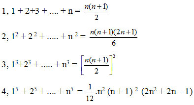 Tương tự ta có thể chứng minh các kết quả sau đây bằng phương pháp quy nạp toán học.