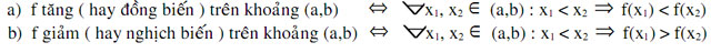 f(u) < f(v) ↔ u < v (với u, v Є (a,b)) |