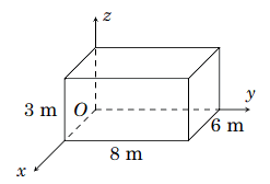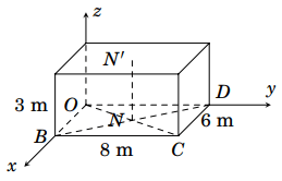 \(3\)m. Một chiếc đèn được treo tại chính giữa trần nhà của phòng học. Xét hệ trục toạ độ