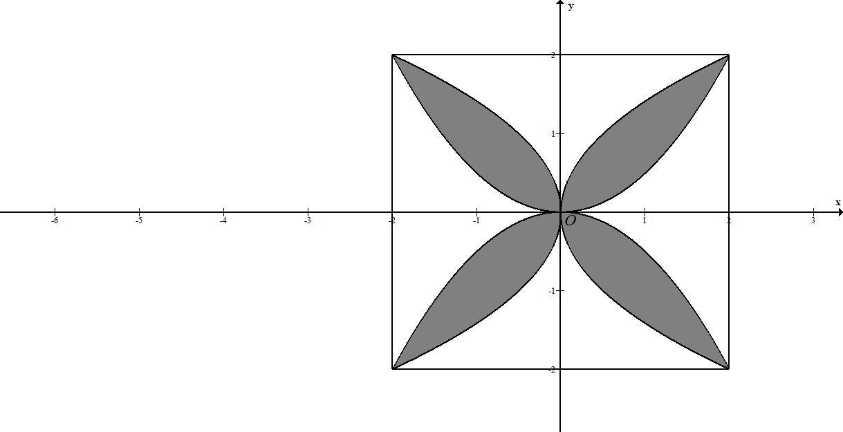 Diện tích một cánh hoa (nằm trong góc phàn tư thứ nhất) bằng diện tích hình phẳng giới hạn bởi hai đồ thị hàm số