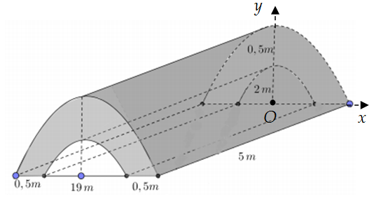 \(3 - D\) mô phỏng một đường hầm như hình vẽ bên. Biết rằng đường hầm mô hình có chiều dài