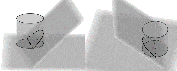\(R\). Cắt khối gỗ đó bởi một mặt phẳng đi qua đường kính của một mặt đáy của khối gỗ và tạo với mặt phẳng đáy của khối gỗ một góc
