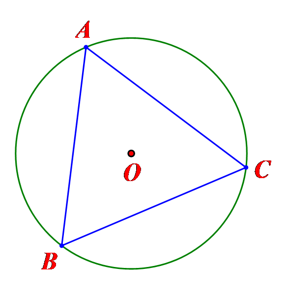 \(ABC\) nội tiếp đường tròn (O). Hãy chỉ ra các phép quay biến tam giác thành chính nó.