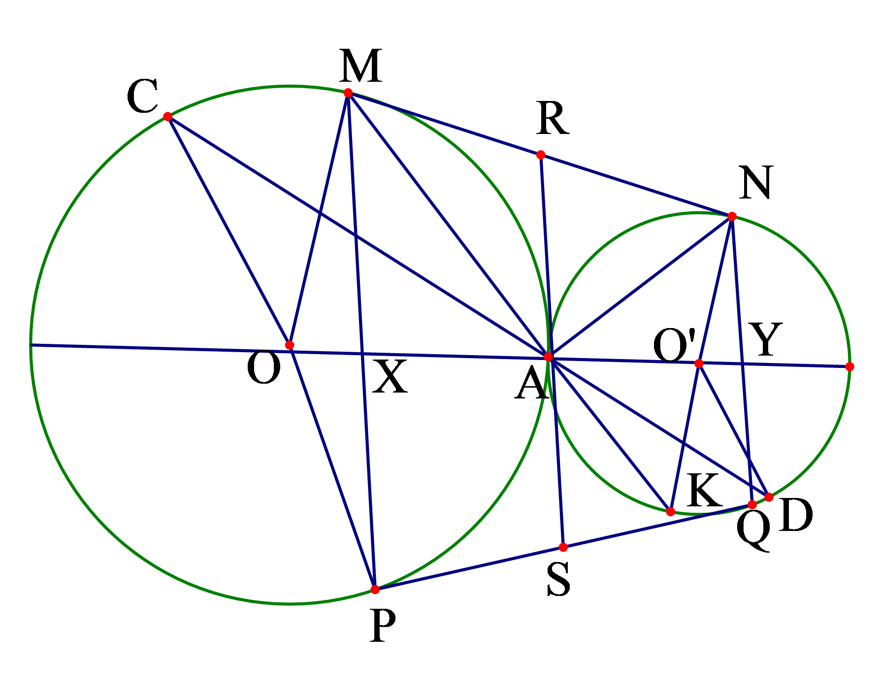 \(RM = RA = RN,SA = SP = SQ\) suy ra