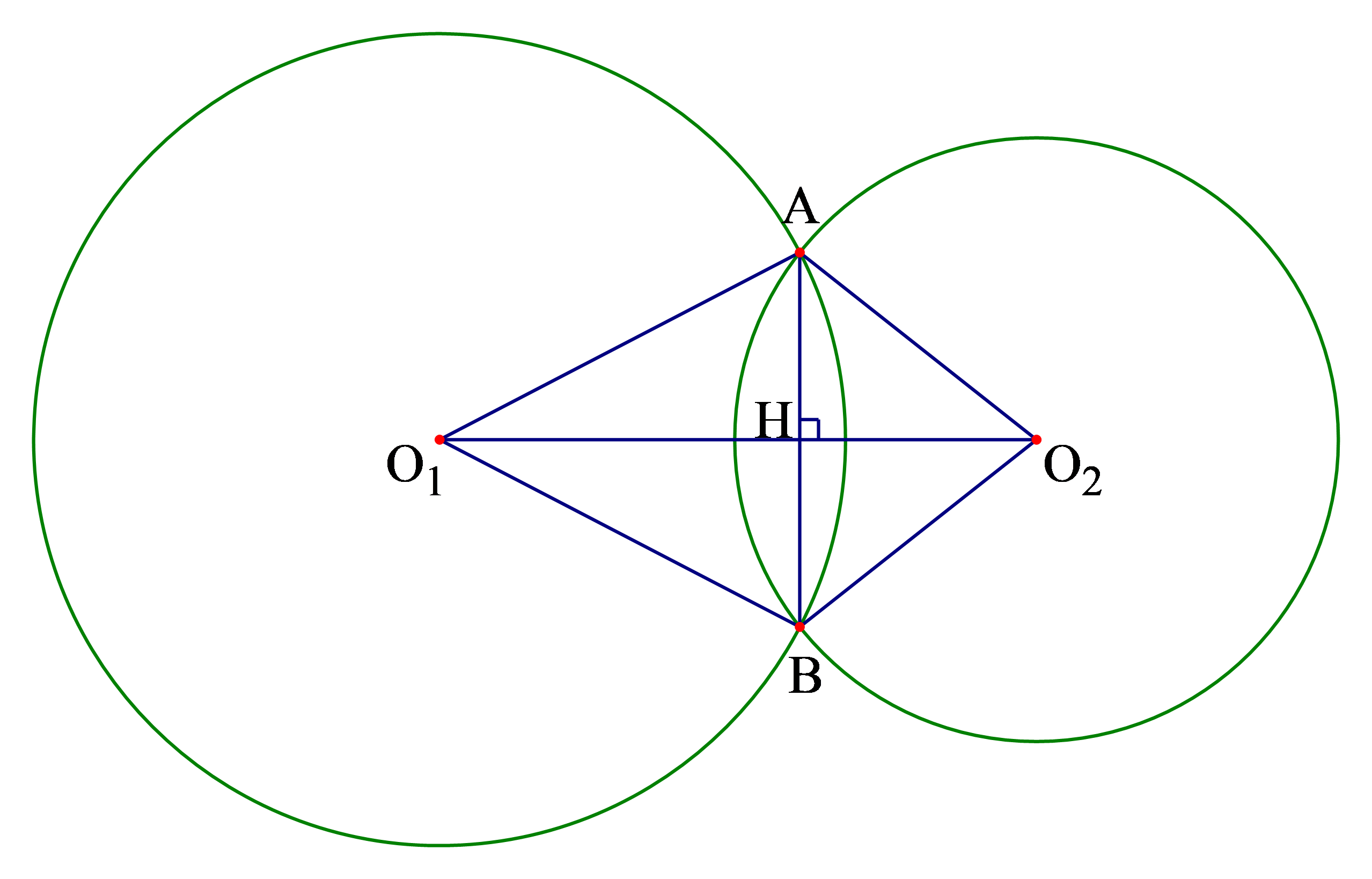 \((O_{1};R),(O_{2};R)\) cắt nhau tại đường thẳng