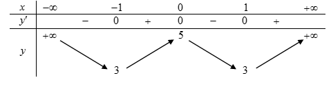 \(\mathbb{R}\) và có bảng biến thiên như sau: