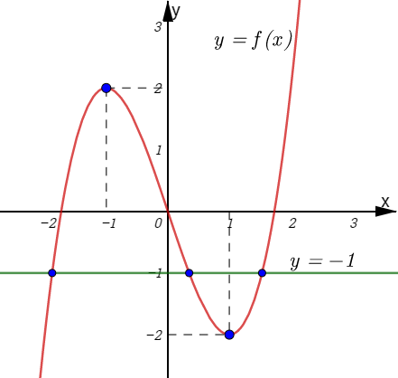 \(f(x) = 1\). Theo hình vẽ ta có số nghiệm là