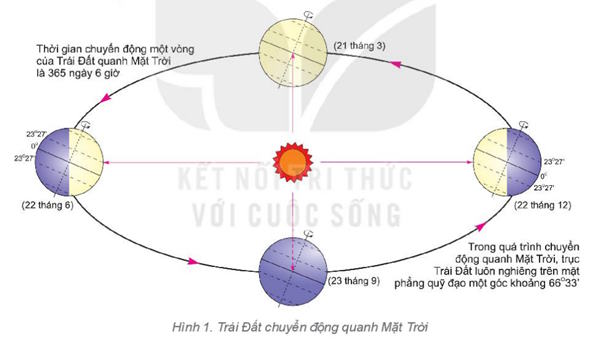- Cùng với chuyển động tự quay quanh trục, Trái Đất chuyển động quanh Mặt Trời.