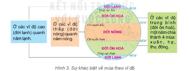 - Trong thực tế, hiện tượng mùa có sự khác biệt theo vĩ độ: