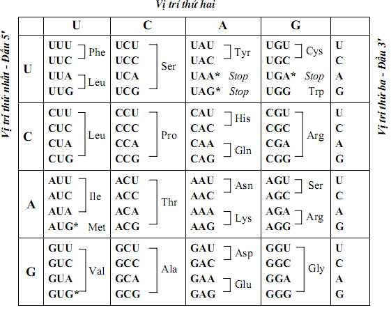 Tham khảo bảng mã di truyền và trả lời các câu hỏi sau: