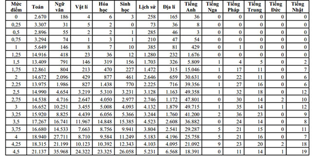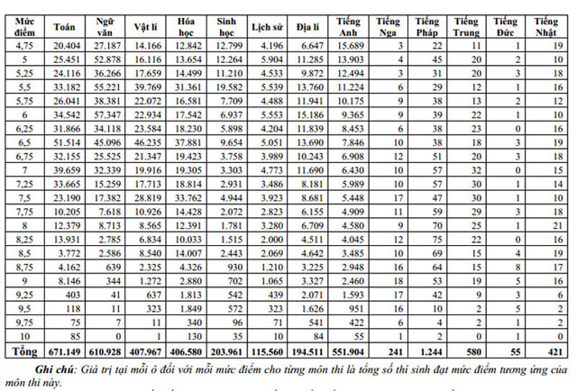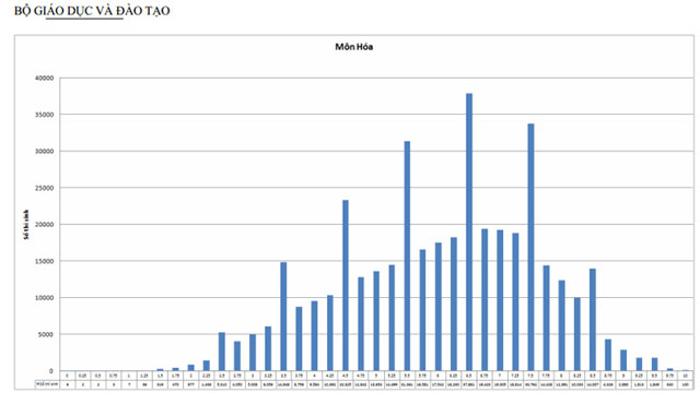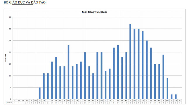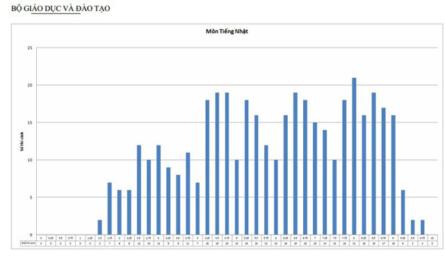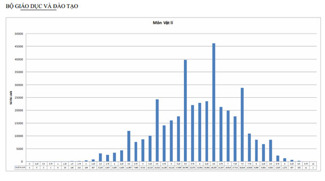 Trước đó, chiều 23/7 Bộ GD-ĐT lần đầu công bố phổ điểm kỳ thi THPT quốc gia. Đến ngày 24/7, Bộ GD-ĐT trình bày lại phổ điểm ở hai môn thi Toán và Ngữ văn.