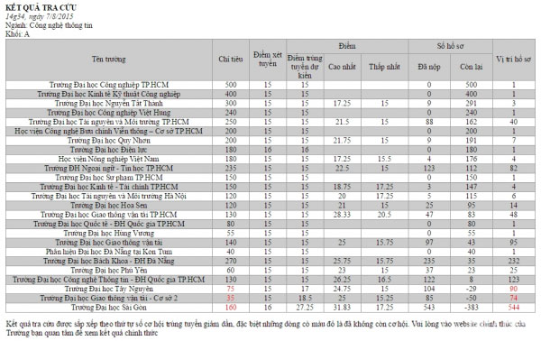 - Với thông tin mang tính tham khảo này, thí sinh cần vào WEB chính thức của các trường đại học để kiểm tra lại thông tin mới nhất để quyết định rút hoặc nộp hồ sơ