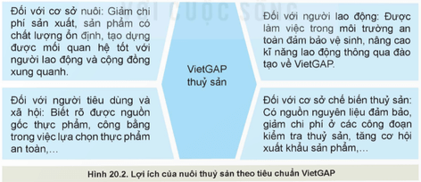 Khám phá trang 101 Công nghệ 12: Quan sát Hình 20.2 và phân tích lợi ích của nuôi trồng thủy sản theo tiêu chuẩn VietGAP.