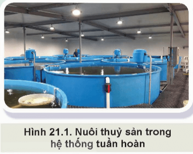 Mở đầu trang 105 Công nghệ 12: Thế nào là nuôi thủy sản trong hệ thống tuần hoàn (Hình 21.1)? Công nghệ này được áp dụng cho những loài thủy sản nào? Nuôi thủy sản trong hệ thống tuần hoàn có ưu nhược điểm gì?