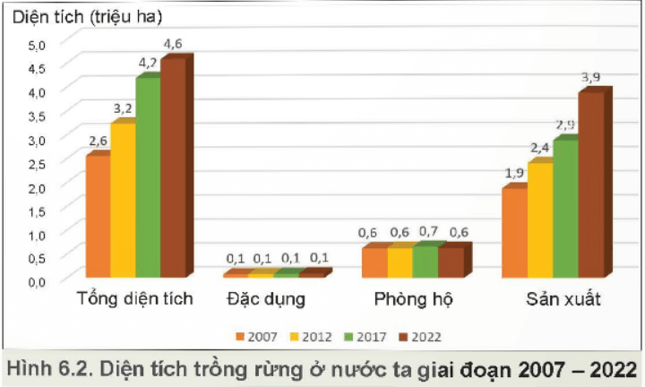 Khám phá trang 34 Công nghệ 12: Quan sát Hình 6.2 và phân tích thực trạng trồng rừng ở nước ra từ giai đoạn từ năm 2007 đến năm 2022