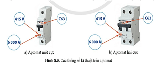 Ý nghĩa các thông số ghi trên aptomat ở Hình 8.5: