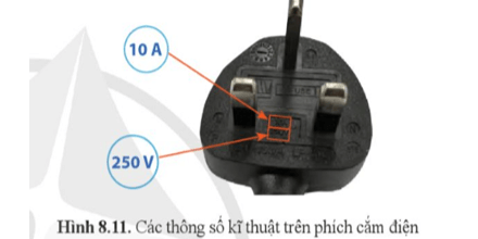 Câu hỏi 2 trang 42 Công nghệ 12: Nêu ý nghĩa của các thông số ghi trên phích cắm điện Hình 8.11.