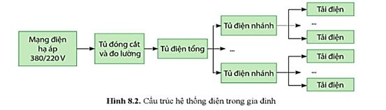 Câu hỏi 2 trang 38 Công nghệ 12: Quan sát Hình 8.2 và mô tả cấu trúc của hệ thống điện trong gia đình