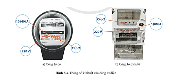 Ý nghĩa của các giá trị ghi trên công tơ điện ở Hình 8.3: