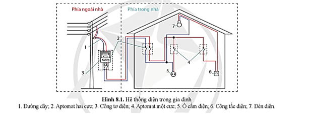 Chức năng của các thiết bị điện trong hệ thống điện gia đình ở Hình 8.1: