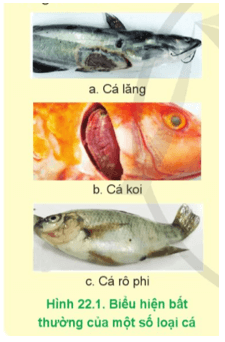 Mở đầu trang 120 Công nghệ 12: Hãy nêu những biểu hiện bất thường của một số loài cá có trong Hình 22.1