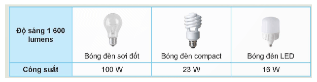 Khám phá trang 59 Công nghệ 12: Để tiết kiệm điện năng em sẽ lựa chọn loại bóng đèn nào ở Bảng 12.1? Vì sao?