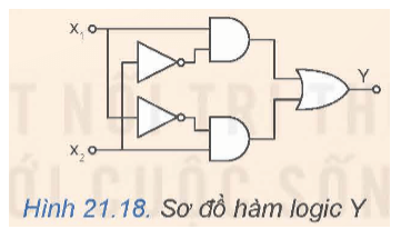 Luyện tập 1 trang 117 Công nghệ 12: Quan sát Hình 21.18, viết hàm logic và bảng chân lí của hàm Y theo x1 và x2.